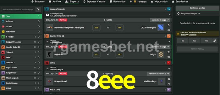 A aposta 8eee oferece aos jogadores a experiência mais conveniente de apostas em eSports!